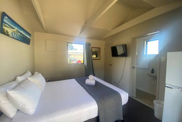 An affordable option for couples. Queen bed with all bedding provided. Convenient small private ensuite bathroom. Use nearby camp kitchen.